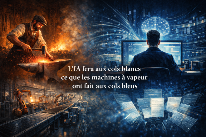 L’IA fera aux cols blancs ce que la vapeur a fait aux ouvriers. Juristes, analystes, consultants : les tâches qui occupent 60 à 70 % de leur temps sont déjà automatisables. Que nous enseigne l’histoire — et surtout, que nous enseigne-t-elle ?